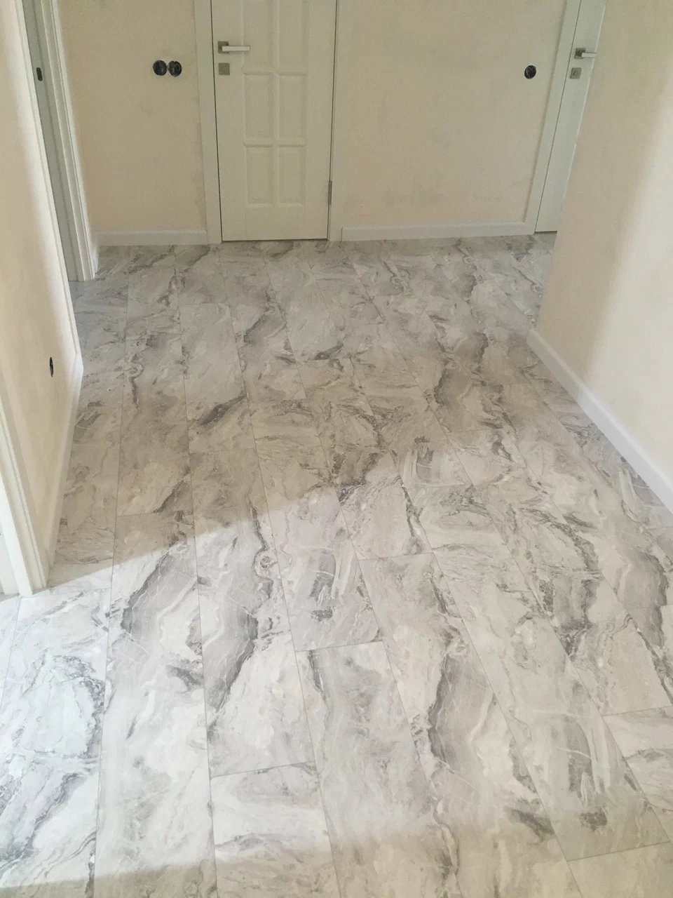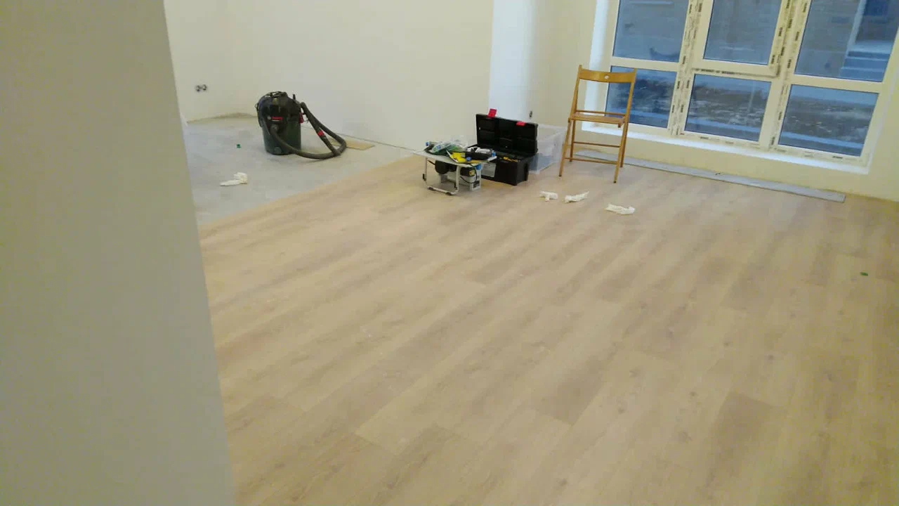 Кварц-винил мы не хотели, потому что эти полы нагреваются, желтеют, пластик испаряется. Слышали разные отзывы, поэтому мы решили не рисковать. LVT мы просто после этого откинули. SPC — там же тоже пластик, такой же.