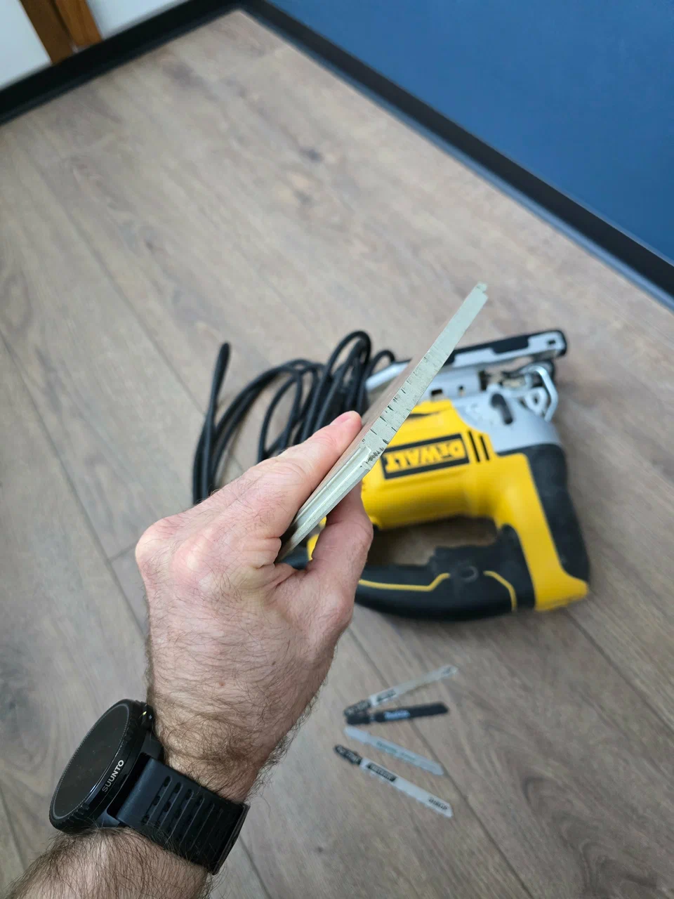 Монтаж: Я пилил электролобзиком с пилками по металлу, но для всей квартиры возьму торцовочную пилу. Замки стыковались очень легко, даже подбивать не пришлось.